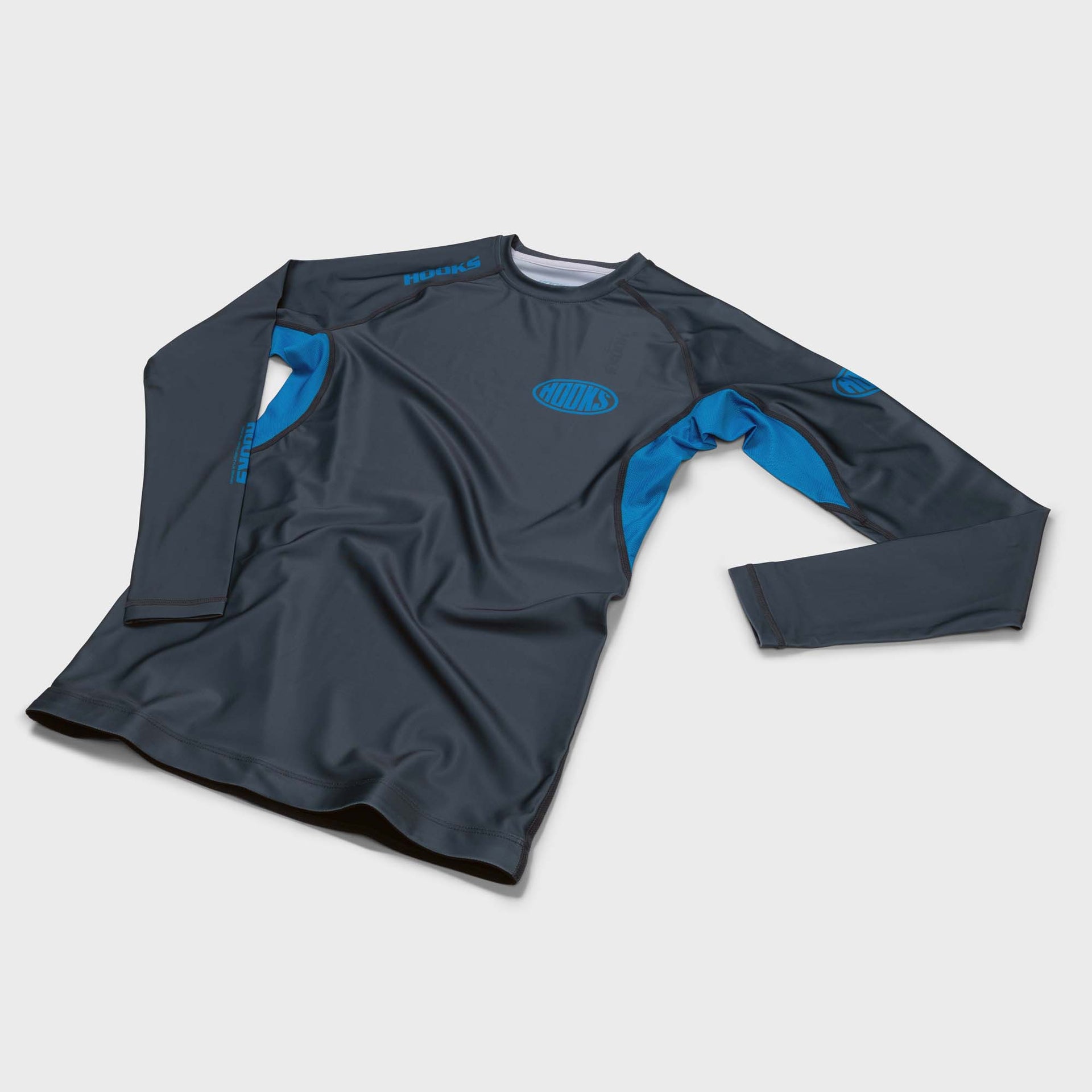 The new Hooks Fusion BJJ Long Sleeve Rash Guard in the Coal colour way, blends style and functionality for your most intense training sessions.