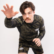 The Black Tiger Camo rashguard features a sleek black tiger camo pattern and is designed with performance in mind and is built for serious grapplers.