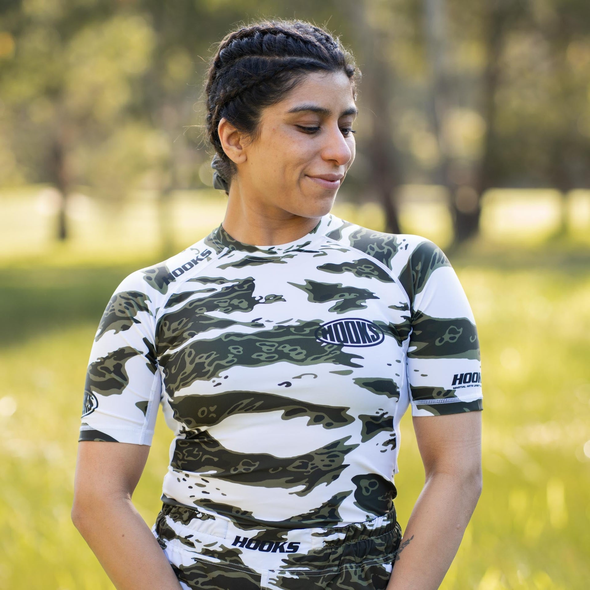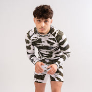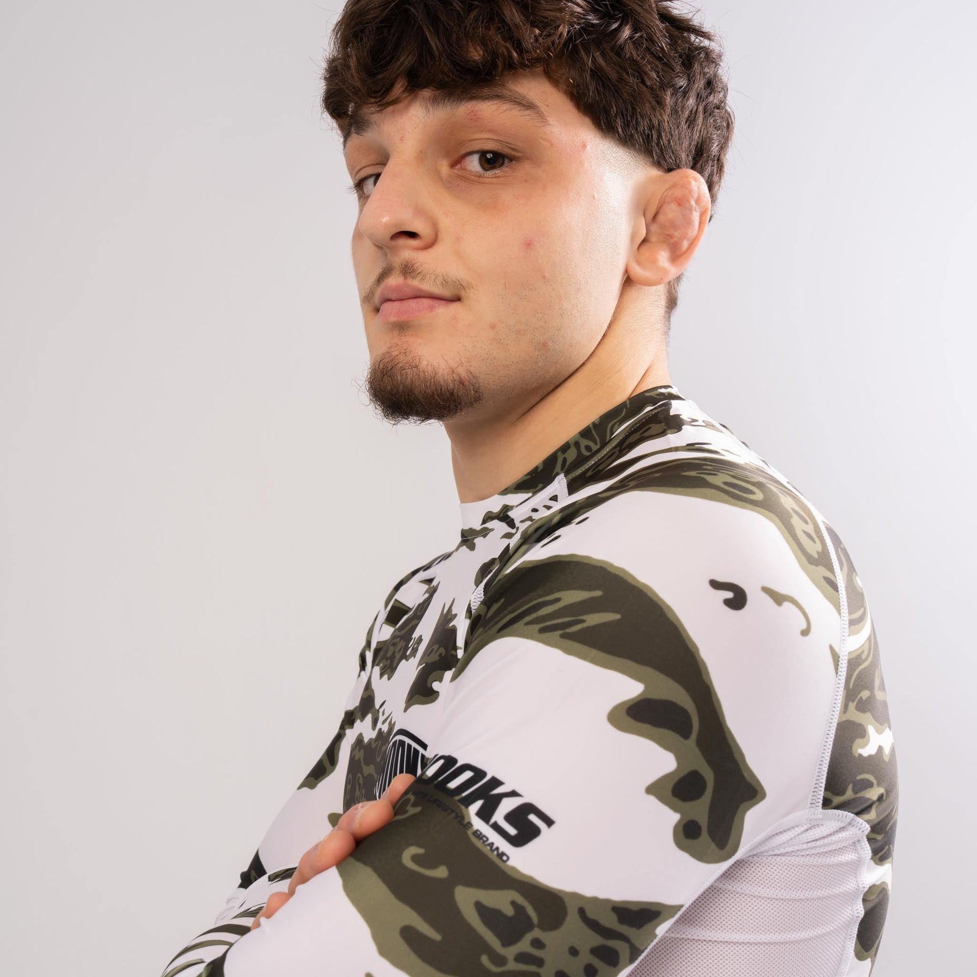 Hooks Long Sleeve BJJ Rashguard - Tiger Camo - White