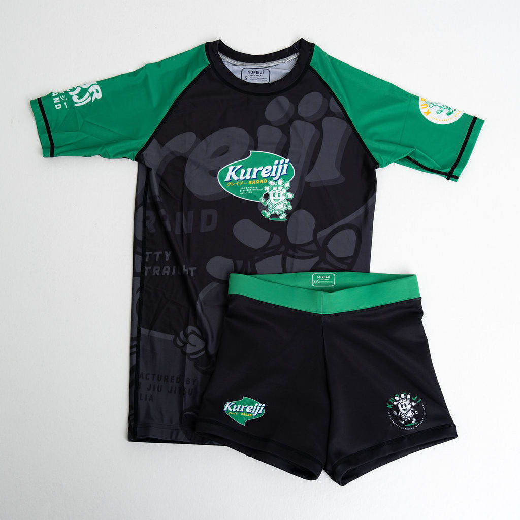 Two flavours, one vibe -Cheese and Chicken. Each set comes with rash guards, vale tudo shorts, grappling shorts, tees, and hoodies, all dripping with Kureiji’s signature cheek and colour.